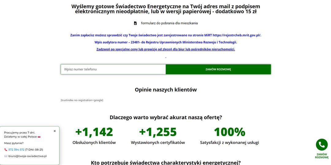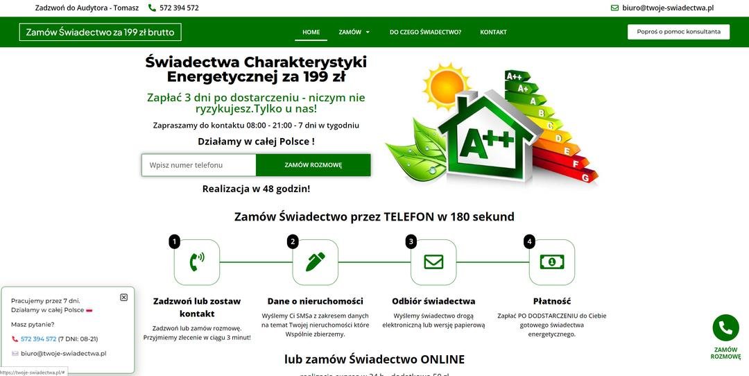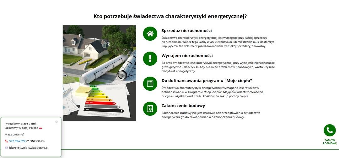 Twoje Świadectwa Charakterystyki Energetycznej to zespół doświadczonych inżynierów budownictwa i audytorów energetycznych, oferujących kompleksowe usługi w zakresie certyfikacji energetycznej budynków. Działamy na terenie Warszawy i okolic, dostarczając rzetelne i zgodne z obowiązującymi przepisami świadectwa charakterystyki energetycznej dla budynków mieszkalnych, komercyjnych i użyteczności publicznej. Gwarantujemy szybko wykonane świadectwo charakterystyki energetycznej budynku. Zapewniamy fachowe doradztwo energetyczne wykonując fachowe świadectwo energetyczne naszym klientom, wspierając naszych klientów w podejmowaniu świadomych decyzji dotyczących efektywności energetycznej i świadectw charakterystyki energetycznej.
